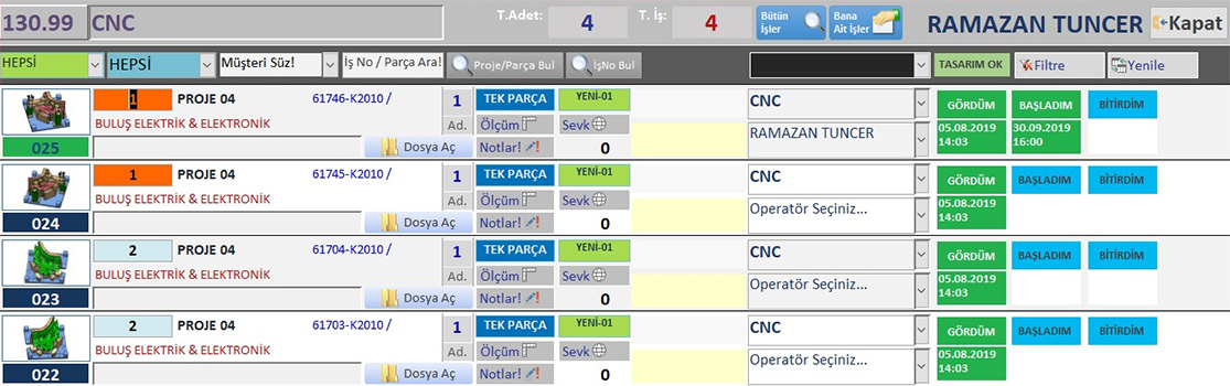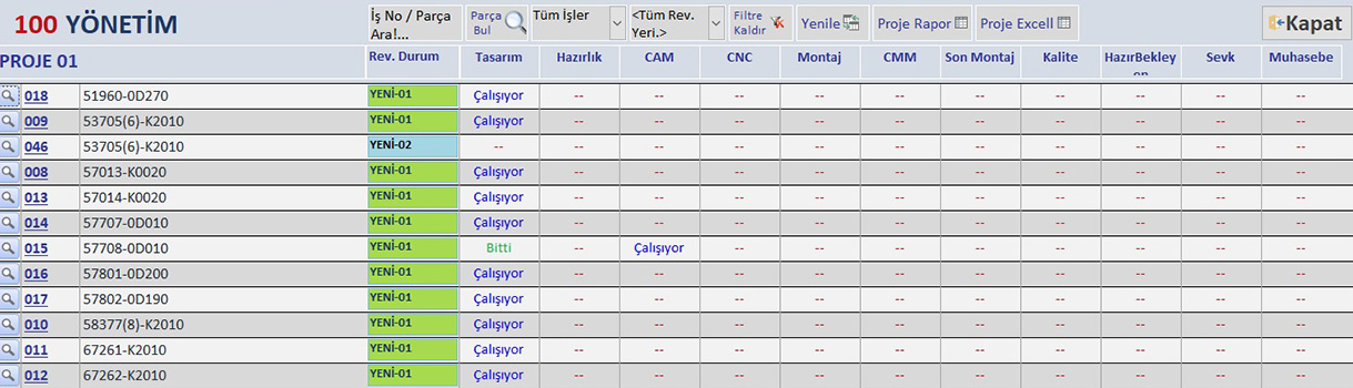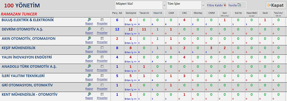 Yöneticiler hızlı ve kullanımı kolay bir şekilde Müşteri, Proje, Süreç, İstasyon raporlarını anlık ve geçmiş istatistikleri üzerinden alabilirken, Diğer çalışanlar için yazılım bir iş yükü getirmemeli, varolan işleri kolaylaştırmalı.