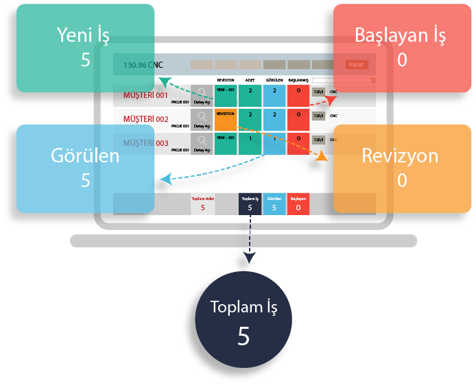 Hangi sektör ve ölçekde olursanız olun, aslında işiniz süreçlerden ve bu süreçlerin gerçekleştiği istasyonlardan oluşur. Müşteriler, Projeleri, Süreçleri ve Durumları ile anlık işletmenizin "Büyük Resmini" görebilirsiniz.